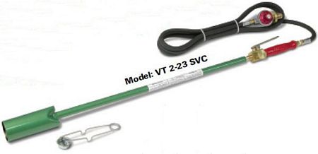 VT 2-23 Vapor Torch w/plastic grip Kit HP-10TMM 10 U.L. Listed LP Gas Hose P-W 795 Hand-Tighten U.L. Listed Excess Flow P.O.L. V-3055 Flame Adjusting Needle Valve (VT 2-23 C) V-880 PH1 Squeeze Valve w/Adjustable Pilot & Handle (VT2-23SVC) R-700 C U.L. Listed Regulator L-2002 Spark Lighter
