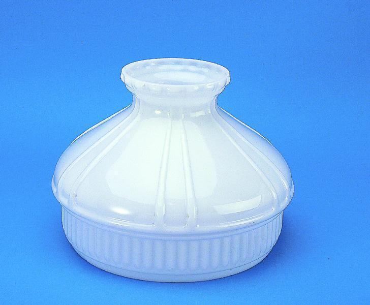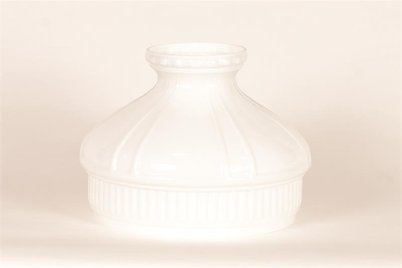 The Model 12 Lamp Shade was originally introduced in 1927 by Aladdin, and this shade has a timeless beauty. Pair this shade with any older or current table lamp! Glossy Opal White color compliments any table lamp. For use with Aladdin 10" under-burner shade rings (sold seperately). This glass lamp shade will also work with Central Draft style coal or kerosene table lamps with 10" shade support.