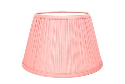 Aladdin Lamps 14" Pink Pleated Cloth Lamp Shade #N110P Choose the 14" Pink Pleated Lamp Shade for both style and economy. This lamp shade provides warmth to any room with out obstructing light. Great for wall lamps or Aluminum Table Lamps. For use with Aladdin Lamps 14" under-burner tripods (sold seperately) or with oil, coal, or kerosene table lamps with a 14" shade support.
