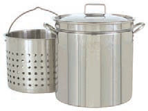 Stainless Steel Stockpot 12.5"d x 11.75"h 0.6 mm/22 Gauge Perforated Steam/Boil/Fry Basket Vented Lid Basket sets 3" above bottom for steaming Size: 14.125" x 14.125" x 13" Weight: 9.38