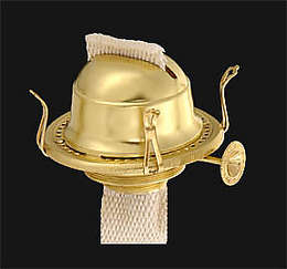 Solid brass No. 3 Queen oil burner. Nice quality burner that is bigger and burns brighter than a #2 burner. Has both #2 (1 3/16"dia.) & #3 (1 13/16" dia.) size threads to fit a #2 or #3 collar. This #3 Queen Anne Burner accepts a 3" base chimney, brass, bright dipped & lacquered.
