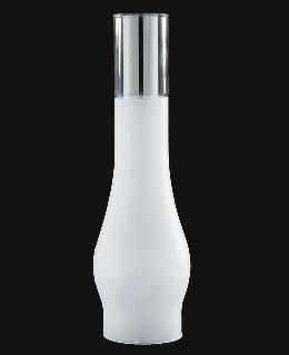 This chimney features frosting from the base to 3/4 of the way up the chimney. The frosted glass diffuses the light produced by the lamp, and produces a nice warm glow. This frosted chimney is also a good pick for electrified lamps, making the light bulb less noticeable.