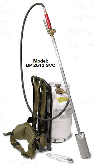 P 2512 C & BP 2512 SVC Kits Include: Part No. Description VT 2 1/2-30 Vapor Torch HP-5 C 5 U.L. Listed LP Gas Hose P-3200W U.L. Listed Excess Flow P.O.L.Fitting V-3055 Flame Adjusting Needle Valve V-880 PH1 Squeeze Valve & Handle w/Adjustable Pilot (BP 2512 SVC) BP 2512 Back Pack Frame C-11 10 lb. Fuel Cylinder (3 gal. capacity) L 2002 Spark Lighter Cylinder Bracket Pipe Thread Sealant If ordering this unit as a replacement for your existing torch setup, please be prepared to provide your SERIAL NUMBER and verify it was manufactured by FLAME ENGINEERING. We do not sell these parts as substitutes for any other manufacturers products.