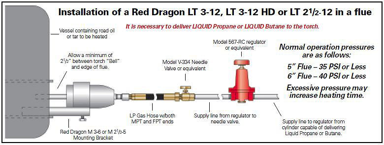 The LT 2-12 is a compact torch for use where a high capacity liquid torch is required but space is limited. Uses include heating road oils, de-icing, heating kilns, and other applications. 2 Liquid Torch Specifications: Maximum Capacity 49,000 BTU/hr Normal Operating Pressure 25 P.S.I. Operating Pressure Range 5-60 P.S.I. Approximate Flame Temperature 2050?F Maximum Fuel Consumption 2.3 lbs/hr Fuel Inlet 1/4 NPT Torch Bell Diameter 2 Overall Length 11 If ordering this unit as a replacement for your existing torch setup, please be prepared to provide your SERIAL NUMBER and verify it was manufactured by FLAME ENGINEERING. We do not sell these parts as substitutes for any other manufacturers products. Click on more images for flue installation help Proudly Made in the U.S.A.