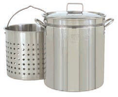 Stainless Steel Stockpot 15.25"d x 18.75"h 0.8 mm/20 Gauge Perforated Steam/Boil Basket Vented Lid Basket sets 2" above bottom for steaming Size: 17.5" x 17.5" x 20" Weight: 20.62