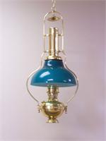 Beautiful Deluxe Brass Hanging Lamp with Elegant Dark Green Bell Shaped Shade.