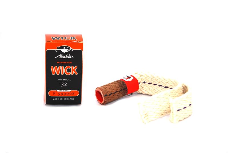 Aladdin Lamps Model 32 Kerosene Refrigerator Wick, #P999908Replace a missing or worn Model 32 kerosene Refrigerator wick with a brand new one. To get the right replacement kerosene wick, you need the burner number (located on the side of the burner or burner knob), and the make and model of refrigerator. #23 and #32 burners are the most common. #21, #21BC and #B burners are rare. The #23 Burner interchanges with any burner except #32. Most Sibirs and a few older Dometics kerosene refrigerators use the #32 burner. This quality cotton round wick is made by Aladdin UK/Hattersly England. Please note that this Model 32 kerosene fridge wick is not interchangeable with Model 23 table lamps. www.p65warnings.ca.gov.