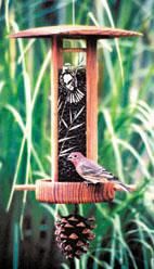 The Songbird Lantern Feeders are a gorgeous addition to any yard. They feature top-loading hopper that makes refilling easy. The bottom perch is removeable for easy cleaning. This well designed feeder features a lid that protects the seed from the elements and the bowl contains drain holes to prevent standing water. Made from beautiful redwood and glass, also includes decorative pinecone. This item proudly made in the U.S.A.