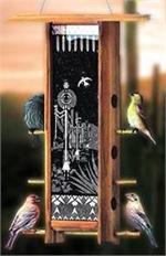 Beautifully designed with clean, classic lines and etched glass featuring bamboo design. Holds 5 cups of seed 12" Tall