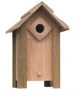 Attracts bluebirds, finches, and tree swallows. Discourages starlings. 13" Tall, Interior width 5-3/4x5-3/4", height to hole 6-3/4", Hole size 1-1/2".