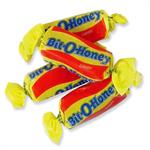 Bit-O-Honey is a bite-sized candy chew with almond bits blended into a honey flavored taffy. Delicious, sweet, and chewy combine into an irresistible candy treat. Bit O Honey candy is known for its long lasting chewiness.