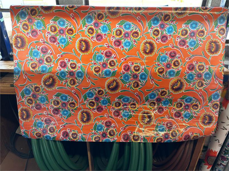 Blooms on Orange Oil Cloth, Yardage