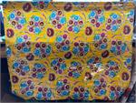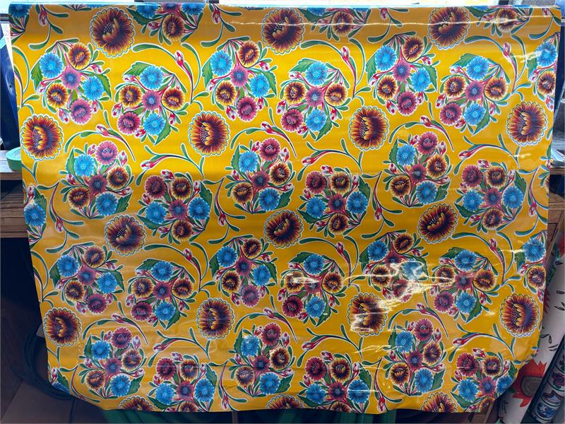 Blooms on Yellow Oil Cloth, Full BoltOilcloth has been around for over a century and when it comes to making a bold color statement anywhere in your home. Oilcloth is a long-lasting, sturdy product that comes in vibrant colors. The oilcloth of yesteryear was resin-coated vinyl and the finish sometimes cracked or flaked. The new version is made of hi-tech plastic that won't crack but has the same colorful shine. Oilcloth has a mesh backing, which means it can really hold a stitch. It can be used for anything that needs to be durable and colorful--tablecloths, upholstered dining room chairs, curtains, bibs, lampshades, tissue boxes, outdoor chairs, etc. Your only limited by your imagination! Oil Cloth measures 48" wide & a full bolt equals 12 continuous yards (36 feet) Don't see the pattern or color you want? Please let us know and we will order it for you!Download a sewing pattern with complete instructions that you can print out at home to make an adorable bib with these oil cloth materials courtesy of Oilcloth.com. Click Here