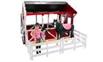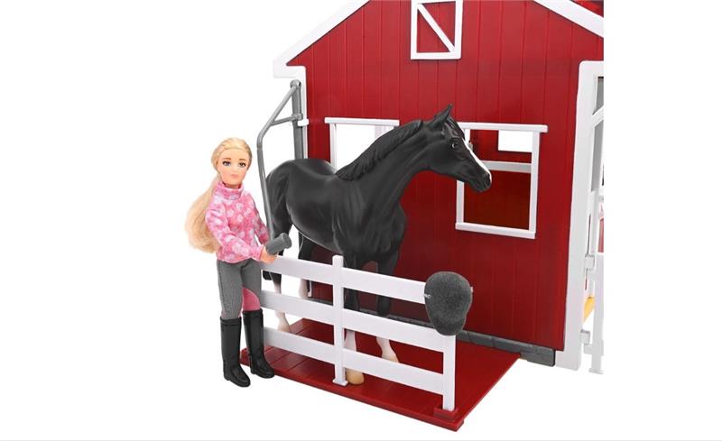 The new Summer Springs Country stable is the perfect place to house and care for your Freedom Series horses - two roomy stalls, a hay loft, and even a built-in wash stall with a swinging hose! The roof opens on either side for easy access to loft area, which has a moveable ladder, making it easy to reach the loft when you need to restock the hay. When it's time to groom your horse, the wash stall slides in and out as you need it.