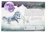 This sea-inspired mare and foal set will sweep you off your feet. Mare Cascade has a metallic pearly blue coat, like the sea at night. Young colt Caspian has a pearly white coat with a touch of soft blue shading. Both of their manes and tails glitter in the light.
