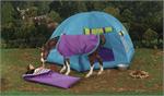Set includes colorful, domed canvas tent with roll-up door and screened roll-up windows, a coordinating sleeping bag and a blanket for your horse!
