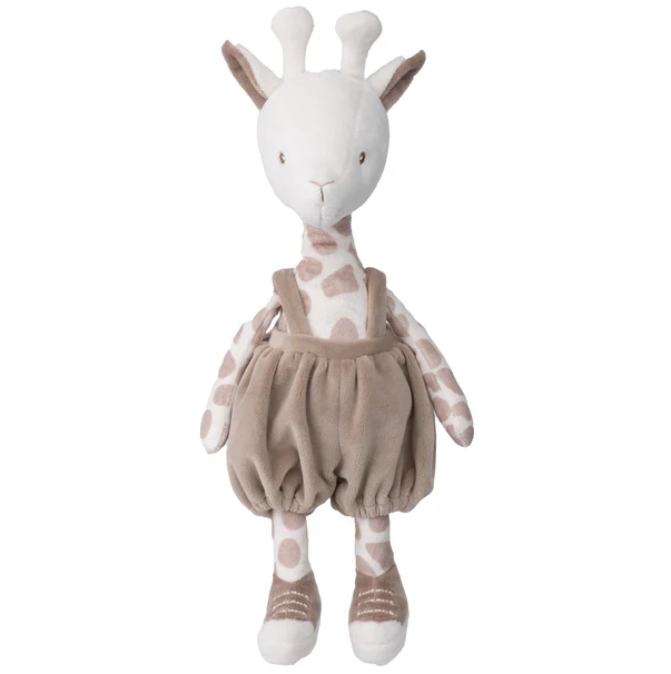Meet Happy Mael, the adventurous little lion who loves to explore! This incredibly plush cuddle buddy is dressed in a charming striped shirt, cozy overalls with delightful patch detailing, and adorable green shoes.