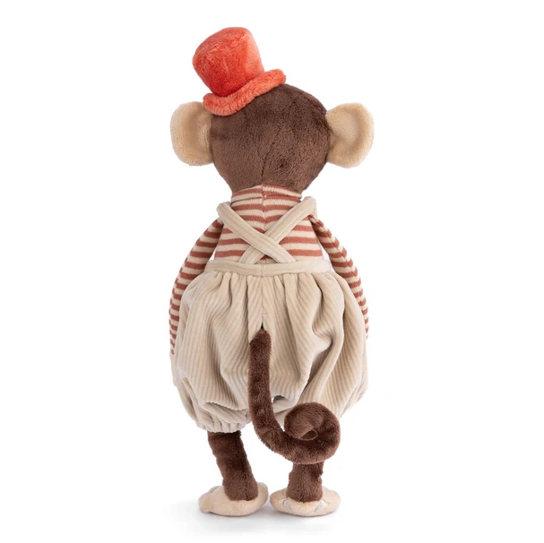 Meet Happy Mael, the adventurous little lion who loves to explore! This incredibly plush cuddle buddy is dressed in a charming striped shirt, cozy overalls with delightful patch detailing, and adorable green shoes.