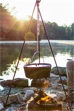 Daniel Boone would be proud to own a Lodge Camp Dutch Oven Tripod! Constructed from hot-rolled steel bar stock and galvanized chain, the tripod is ideally suited for use with Lodge Camp Dutch Ovens. 2 heights to choose from.