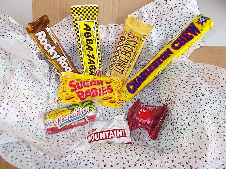 Bring back memories from your childhood. Our Nostalgic Favorites is an 8 piece sampler pack of classic candy bars. Includes: Abba Zabba, Charleston Chew, Cup O Gold, Idaho Spud, Mountain Bar, Pearson’s Nut Goodie,Rocky Road, and Zero Bars.