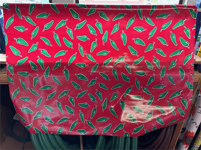 Chiles Green on Red Oil Cloth, YardageOilcloth has been around for over a century and when it comes to making a bold color statement anywhere in your home.