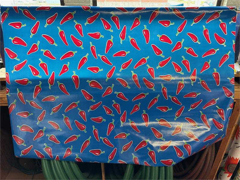 Chiles Red on Blue Oil Cloth, Full Bolt |