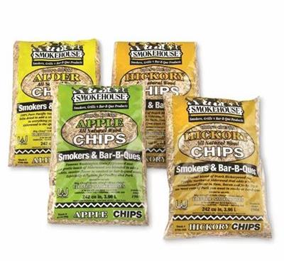Smokehouse Products Wood Chips 4-Pack Assortment #9794Smokehouse brand Wood Chips are thoroughly dried, and all of the bitter tree bark has been removed to ensure 100% natural wood and maximum wood smoke. The wood chips are precision ground for an even, consistent burn. Chips work in electric and propane food smokers, Grills, and Bar B Ques. The Small Assortment Case of Chips and Chunks includes 4- 1 3/4 lb. Packages Assortment Includes: 2 - Hickory, 1 - Alder, 1 - Apple Smokehouse Products is located in the beautiful Hood River Valley in the heart of The Columbia River Gorge. The Little Chief electric smoker was introduced in 1968 (under the Luhr Jensen brand) and enjoyed such success that the Mini Chief and Big Chief smokers soon followed. Today Smokehouse Products offers a full line of smoker accessories, including five flavors of chips, sausage making kits, sausage mixes, seasonings, jerky and dry rub mixes, drying screens, smoker insulation blankets, and replacement parts. Smokehouse Products is committed to supplying our customers with the very best smoker accessories on the market today and will continue to look for ways to enhance your experience using the Big Chief, Little Chief, and Mini Chief smokers.Older Smokers may carry the Luhr Jensen or Totem brand, instead of the current Smokehouse Products logo. This item proudly made in the U.S.A.