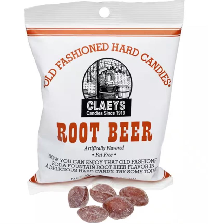 Claey's Root Beer Candy 6 oz. bag traditional rich and creamy Since 1919, Claey's has been making traditional hard sanded candies. Each batch is made to the same recipe as the originals. Rich and creamy, just like a tall, cold glass of homemade root beer. Wonderfully flavorful. Check out our complete selection of: Claey's Candy
