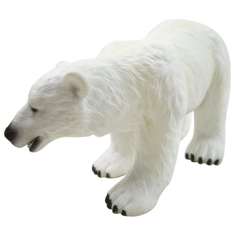 Polar bear fur consists of a layer of dense underfur and an outer layer of guard hairs, which appear white to tan but are actually transparent. This toy figurine measures: 11cm X 6cm. This true to life, scaled-down Polar Bear is perfect for use in dioramas, pretend arctic scenes, or other displays.