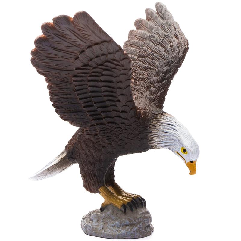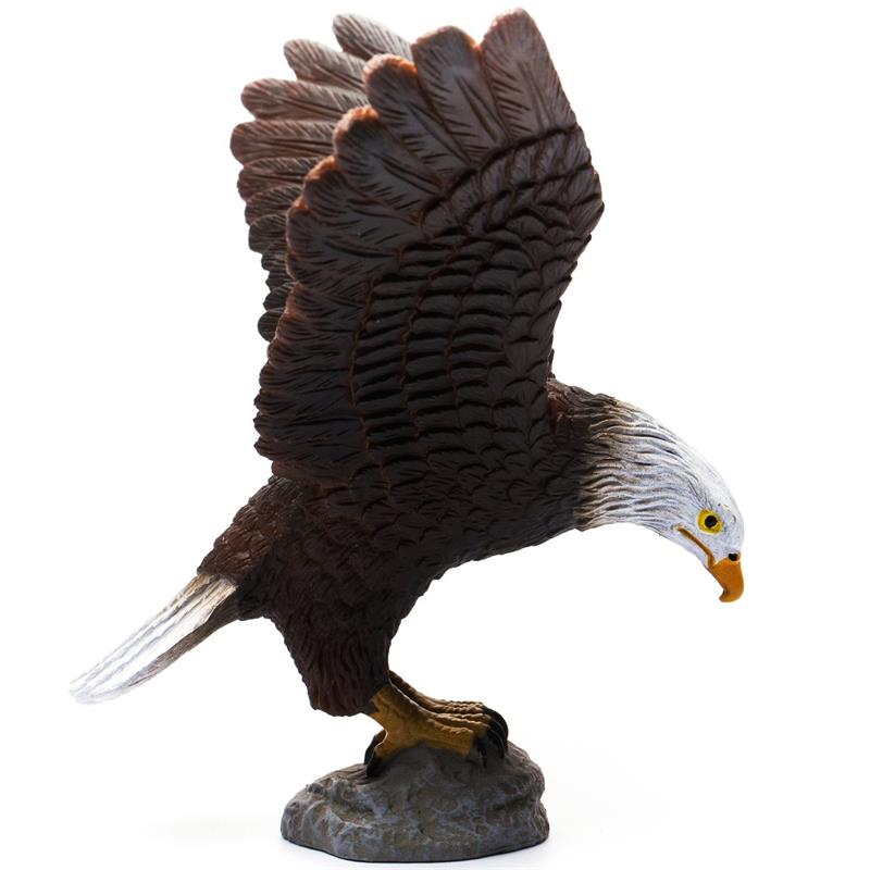 The bald eagle is the national bird of the United States. It was added to the list of endangered species in the United States in 1967 and its numbers have recovered well since. Bald eagles live for around 20 years in the wild. CollectA's mission is to build "a natural world in miniature". Using role play, children gain a deeper knowledge of the animals. Excellent for educational purposes and for use in dioramas, pretend habitat scenes, or other displays. The 4.1" L x 3.5'' H Wildlife American Bald Eagle is realistic and lifelike in every detail, from it's giant wing span to it's powerful talons.