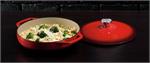 Americans have always had a passion for marinating, and what better piece of cookware to use than the Lodge Color 3-quart casserole. Venison, water fowl and other specialties of the season can be marinated to perfection in these beautiful and versatile pots. The Lodge Color Casserole is a rare culinary gem. It is also the perfect size for casseroles, large batchesof side dishes, or desserts. A wonderfulpresentation piece for any dinner. Includes cover. 3 qt. capacity, 11-3/4 diameter. Made by Lodge Cast Iron. Imported. This item proudly made in the U.S.A.