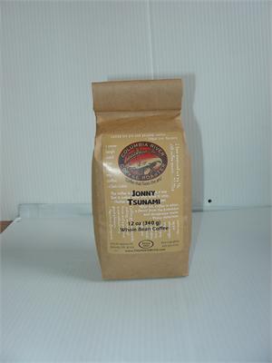 Jonny (Johnny) Tsunami is Columbia River Coffee's house espresso blend. Backing off on the darkness to allow for a more complex shot of espresso, Jonny Tsunami is a blend of African, Indonesian and South American Coffees. It has a smooth, rich buttery flavor, and a good, full body. Works beautifully as an espresso or a french press.