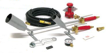 This combination field and detail torch kit is our most popular model. The handy quick connect feature enables the operator to switch from a standup to detail torch in a snap without tools and while still using the same LP gas hose, regulator and tank. Also available in a Lightweight Model RT COMBO LW. RT COMBO Kit Includes: Part No. Description RT 2 1/2-20 400,000 BTU Field Torch w/Male Quick Connect or RT 2 1/2-20 LW 400,000 BTU Field Torch w/Male Quick Connect RT 1 1/2-10 50,000 BTU Detail Torch w/Male Quick Connect HN-5 Female Quick Connect HP-25 25 U.L. Listed LP Gas Hose 567-RC U.L. Listed Regulator P-W 795 U.L. Listed Hand Tighten P.O.L. Fitting G-23 Pressure Gauge (2) TB-4 Welded Torch Stands L-2001 Spark Lighter and Flints Pipe Thread Sealant Proudly Made in the U.S.A.  If ordering this unit as a replacement for your existing torch setup, please be prepared to provide your SERIAL NUMBER and verify it was manufactured by FLAME ENGINEERING. We do not sell these parts as substitutes for any other manufacturers products.