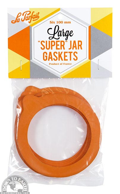 The iconic orange gasket means you're canning with quality. The gaskets are made of a natural material and cannot be reused. Displaying or storing gaskets on Le Parfait jars may damage them for canning purposes.