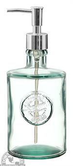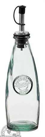 "Authentic" Bottle with Spout. Embossed with "Authentic 100% Recycled Glass" seal. 10 oz. capacity. Clear Green Recycled Glass. Perfect for everyday use for oil, vinegar, salad dressing and more.