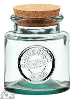 Clear Green Recycled Glass, 8 oz. capacity. Embossed with "Authentic 100% Recycled Glass" seal. Decorative, classic looking jar for the living room, kitchen or bath. Due to the nature of recycled glass, some color variation is to be expected.