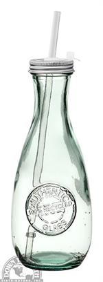 Drinking Bottle with Metal Lid and Reusable Straw. Embossed with decorative "Authentic" emblem. Clear Green Recycled Glass, 20 oz. capacity. Perfect for everyday use either on the go or casual entertaining on the deck or patio.