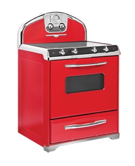 Elmira Stove Works 30" 4-Burner All-Electric True Convection Self-Clean Range with Chrome Trim, Candy Red #1954-C