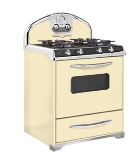 Elmira Stove Works 30" 4-Burner Natural Gas Top, Electric Self-Cleaning Convection Oven with Chrome Trim, Buttercup Yellow #1955-C