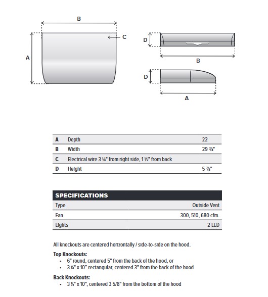 Elmira Stove Works 30" Outside-Vent Range Hood, Bisque #1962