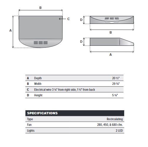 Elmira Stove Works 30" Recirculating Range Hood, Textured Black #1961