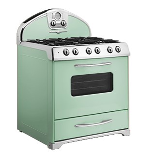 Elmira Stove Works 36" 6-Burner Dual Fuel True Convection Range Self-Cleaning Oven with Chrome Trim, Mint Green #1947-C