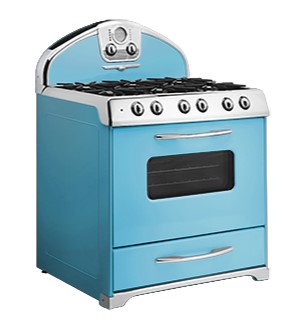 Elmira Stove Works 36" 6-Burner Dual Fuel True Convection Range Self-Cleaning Oven with Chrome Trim, Tropical Blue #1947-C
