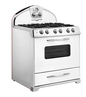Elmira Stove Works 36" 6-Burner Dual Fuel True Convection Range Self-Cleaning Oven with Chrome Trim, White #1947-C