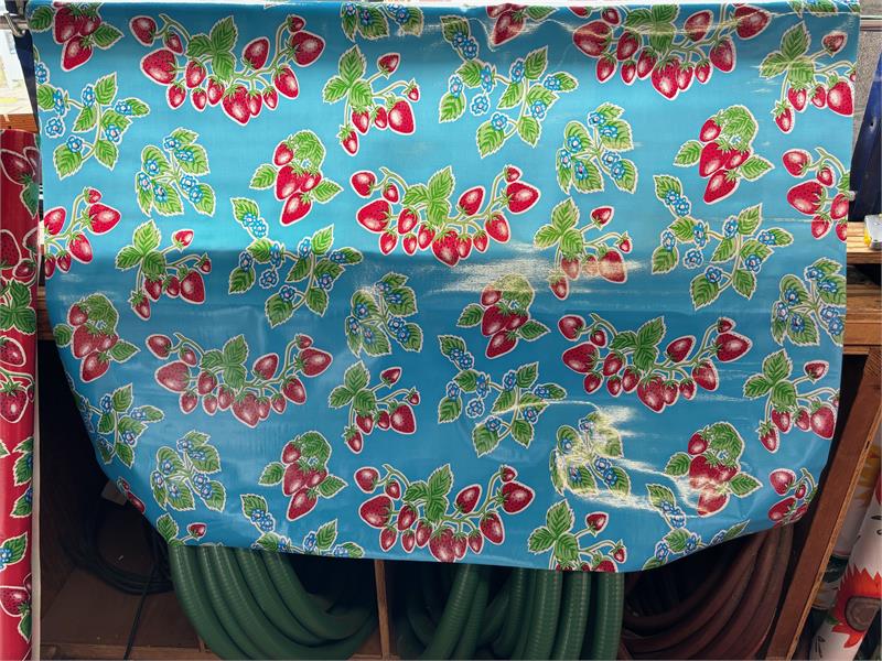 Forever Summer on Blue Oil Cloth, Full BoltOilcloth has been around for over a century and when it comes to making a bold color statement anywhere in your home. Oilcloth is a long-lasting, sturdy product that comes in vibrant colors. The oilcloth of yesteryear was resin-coated vinyl and the finish sometimes cracked or flaked. The new version is made of hi-tech plastic that won't crack but has the same colorful shine. Oilcloth has a mesh backing, which means it can really hold a stitch. It can be used for anything that needs to be durable and colorful--tablecloths, upholstered dining room chairs, curtains, bibs, lampshades, tissue boxes, outdoor chairs, etc. Your only limited by your imagination! Oil Cloth measures 48" wide & a full bolt equals 12 continuous yards (36 feet) Don't see the pattern or color you want? Please let us know and we will order it for you!