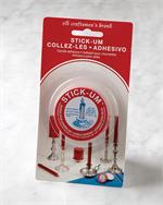 A popular and attractive centerpiece, now you can bring security and ease to unfitting candle holders. Don't let your holiday or family dinner fall flat due to drooping and tipping candles! Keep your favorite scents standing upright in their holder with Stick-Um Candle Adhesive. This candle-saving glue is conveniently available and stored in a small pocket-sized round tin. To use, simply place a small portion of the adhesive onto the candle base, and then press and twist your candle into the holder. The glue will hold the bottom of candle firm in the holder and will never harden! When finished, the adhesive can be easily washed off of the holder with hot soapy water. Great for candles that wobble and do not fit snug in their holders. Keep everything around your candles neat and clean, and don't let your candles (and party) fall flat.