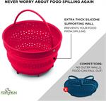 HIGH QUALITY FOOD-GRADE SILICONE is 100% BPA-free and safe for pressure cooking; won't scratch or scuff kitchen tables; No need to set on a trivet like traditional stainless steel steamer baskets