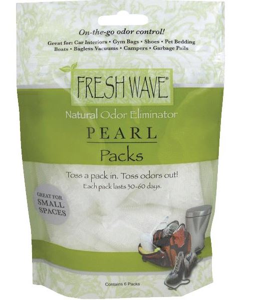 Fresh Wave Pearl Packs #086The new and improved natural odor eliminating Fresh Wave Pearl Packs are stronger, last longer and includes 6 pre-filled mesh pouches that are ideal for neutralizing malodors in small, tight or otherwise confined spaces. Safe to use around people and pets. Fresh Wave pearl pack sachets can be tossed into a gym bag, placed under the seat of your auto, slipped into shoes, garbage bins, diaper pails, laundry hampers, or any confined area that could benefit from a little odor control. Each sachet lasts approximately 30 days. Designed for on-the-go lifestyle. Proudly Made in the U.S.A.