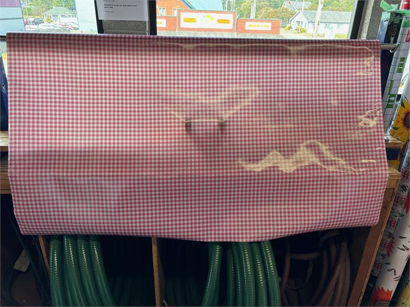Gingham Rose Pink Oil Cloth , Full BoltOilcloth has been around for over a century and when it comes to making a bold color statement anywhere in your home. Oilcloth is a long-lasting, sturdy product that comes in vibrant colors. The oilcloth of yesteryear was resin-coated vinyl and the finish sometimes cracked or flaked. The new version is made of hi-tech plastic that won't crack but has the same colorful shine. Oilcloth has a mesh backing, which means it can really hold a stitch. It can be used for anything that needs to be durable and colorful--tablecloths, upholstered dining room chairs, curtains, bibs, lampshades, tissue boxes, outdoor chairs, etc. Your only limited by your imagination! Oil Cloth measures 48" wide & a full bolt equals 12 continuous yards (36 feet) Don't see the pattern or color you want? Please let us know and we will order it for you!Download a sewing pattern with complete instructions that you can print out at home to make an adorable bib with these oil cloth materials courtesy of Oilcloth.com. Click Here