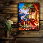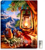 Art is printed on a silky satin cloth, providing sharp detail and vibrant color. It's then mounted on Oregon Pine Wood stretcher bars. Finally, we install our unique LED lighting system enhancing and illuminating the entire painting.
